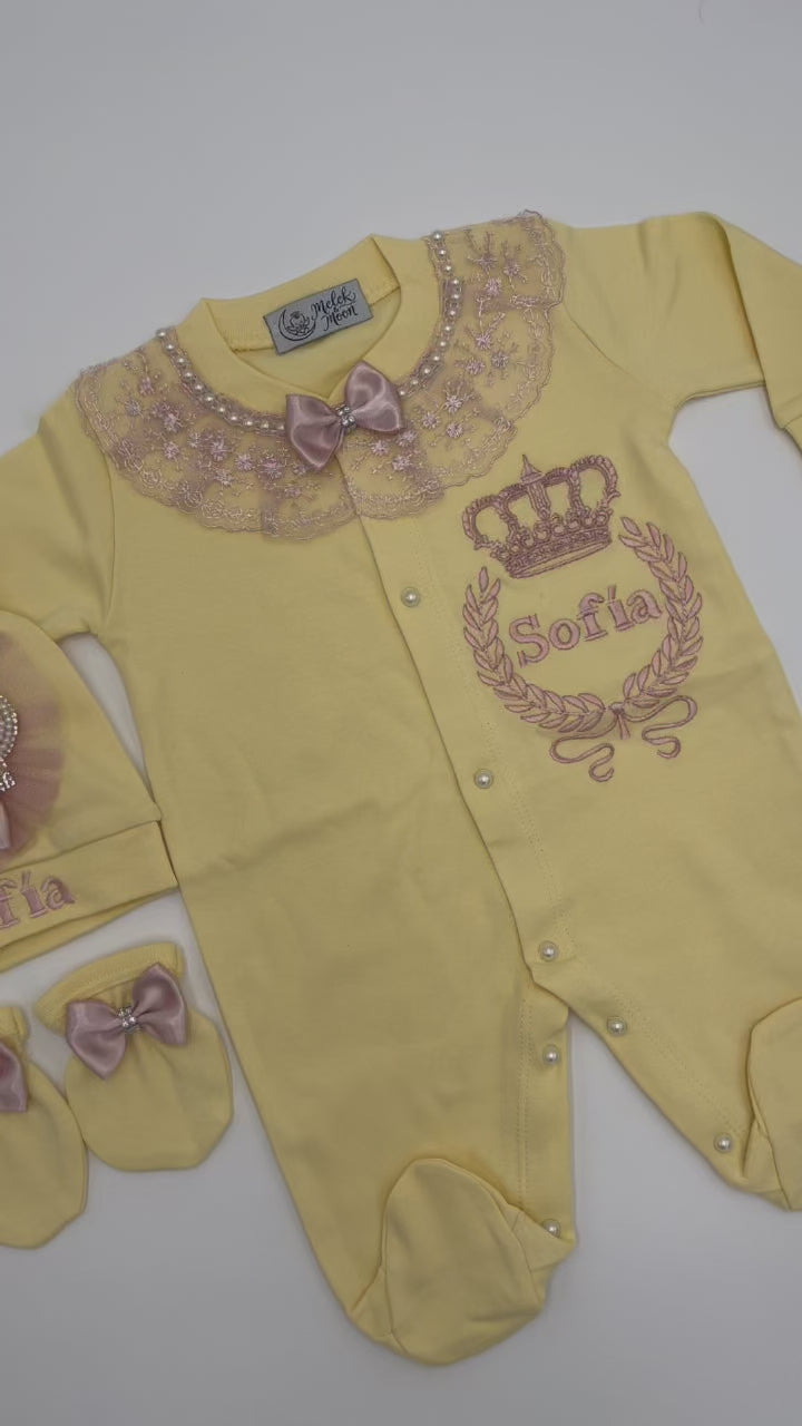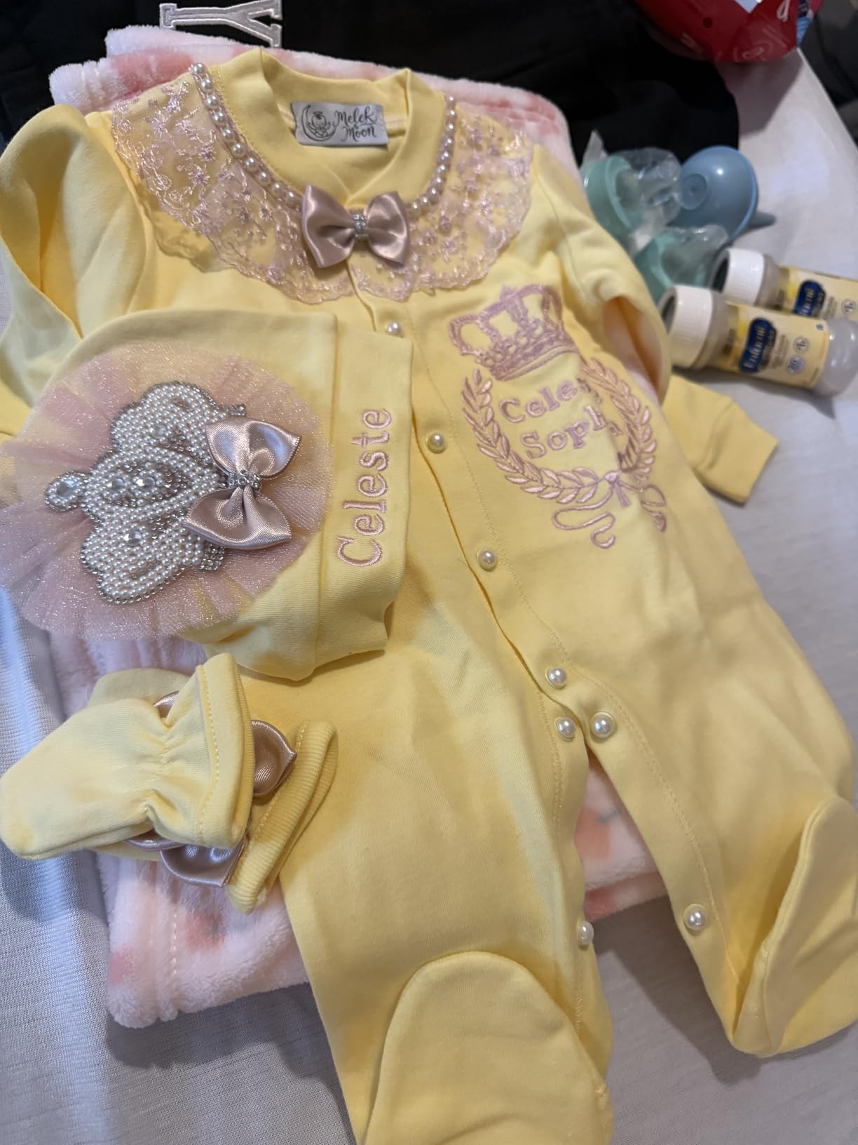 "Baby set, newborn made of soft and beautiful cotton, for the first day of life, its excellent packaging and embroidery too"